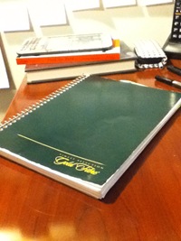 Let's go briefly back to my notebook—it's awesome, isn't it? I get this particular kind of notebook from my dad who has to order them in bulk through his job. He gets roughly fifty at a time and so I've siphoned a few of them off of him from time to time whenever I start a new story. (I hate putting multiple stories in one notebook. Makes my skin itch.)